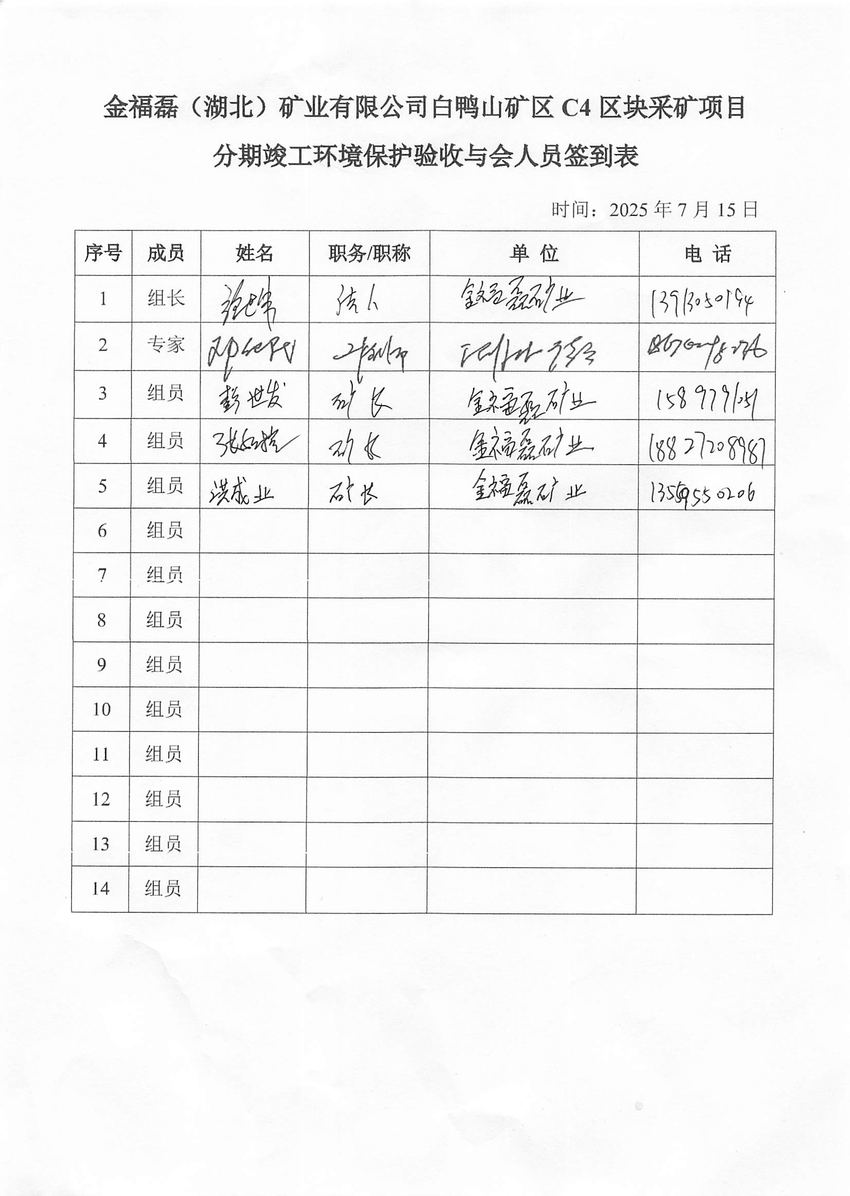 2025年7月15日,金福磊(湖北)礦業(yè)有限公司在麻城市主持召開了《金福磊(湖北)礦業(yè)有限公司白鴨山礦區(qū)C4區(qū)塊采礦項目竣工環(huán)境保護驗收監(jiān)測報告表》技術(shù)評估會。