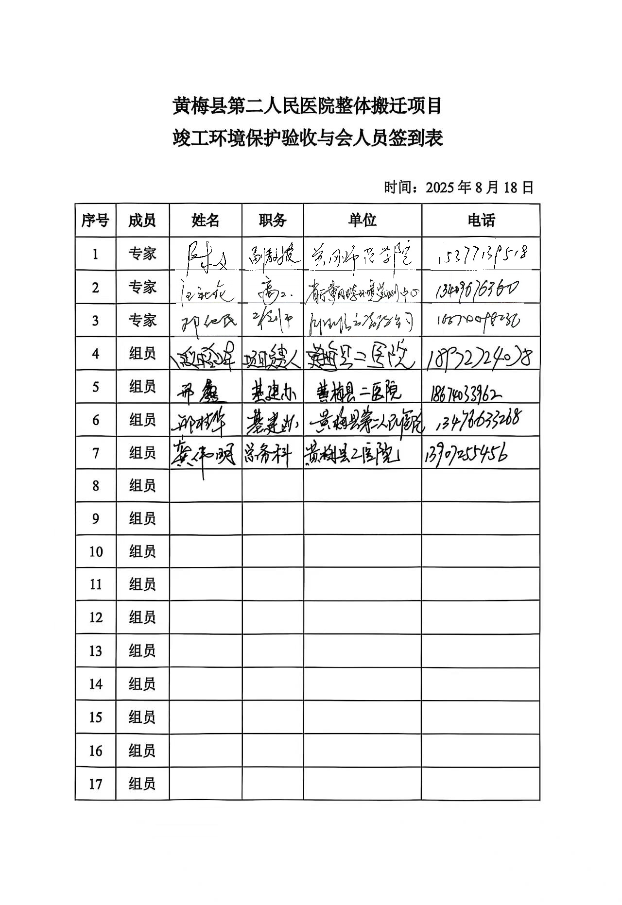2025年8月18日,黃梅縣第二人民醫(yī)院組織專家對黃梅縣第二人民醫(yī)院整體搬遷項目竣工環(huán)境保護驗收監(jiān)測報告進行了函審。